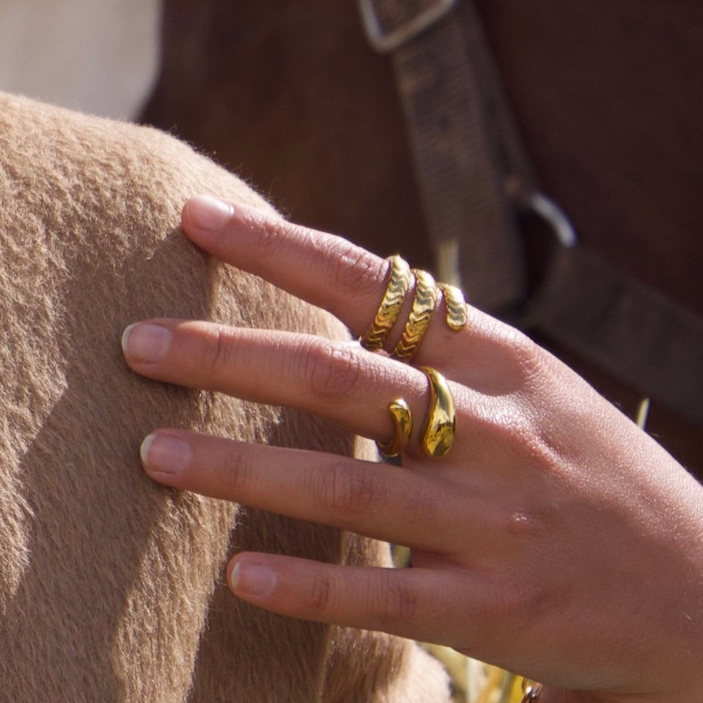 Su diseño orgánico y envolvente abraza el dedo con suavidad, aportando carácter sin