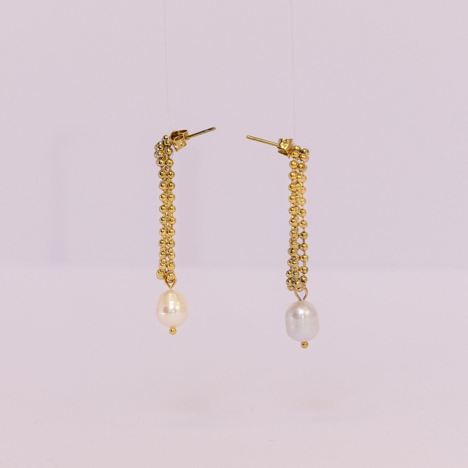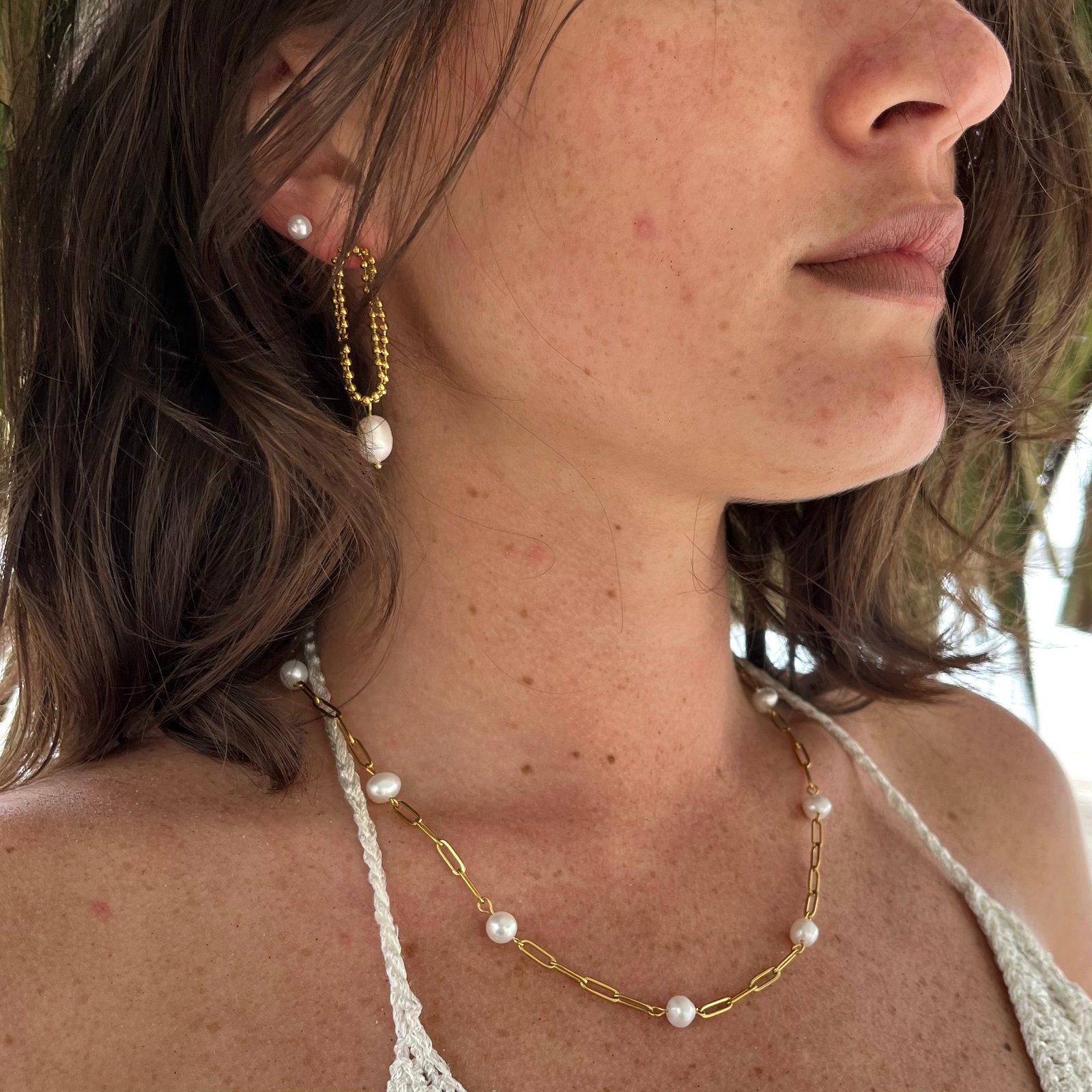 Mejía es un diseño elegante y luminoso formado por pequeñas esferas doradas que crean un aro delicado y con textura. En la parte inferior, una perla natural aporta un toque clásico y sofisticado, haciendo que esta pieza se sienta especial desde el primer momento.