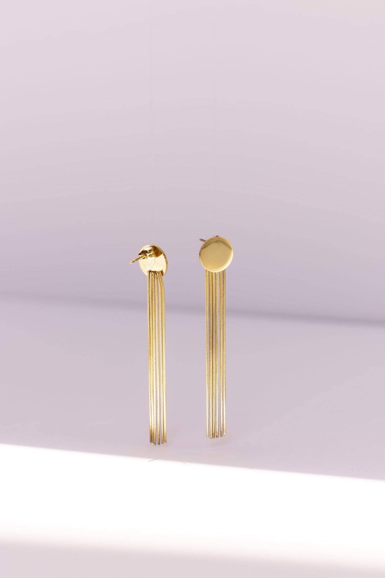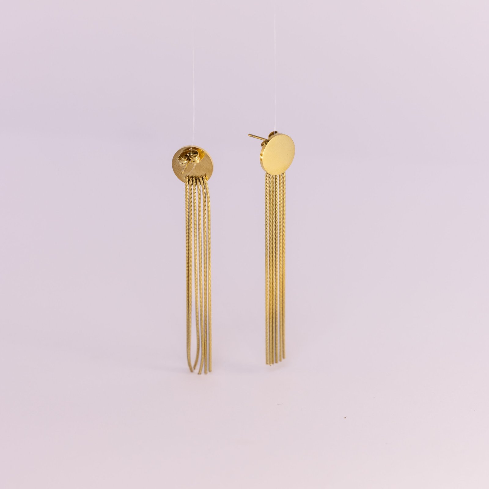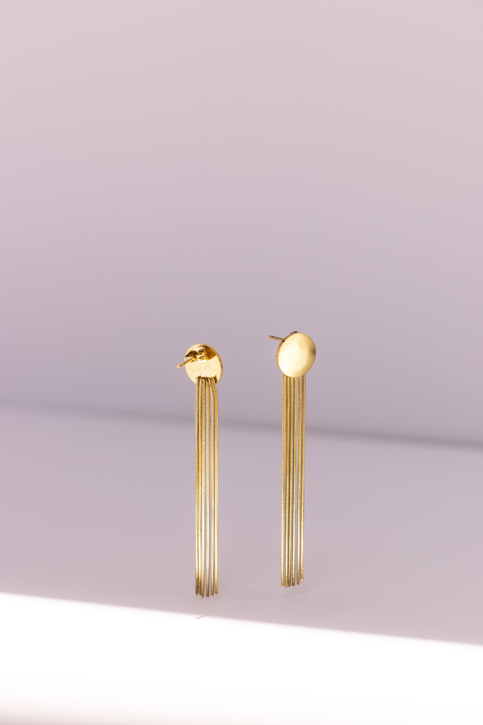 Tarata es un diseño largo, minimalista y muy elegante. Su forma delgada y recta alarga visualmente el cuello, creando un efecto estilizado y sofisticado.