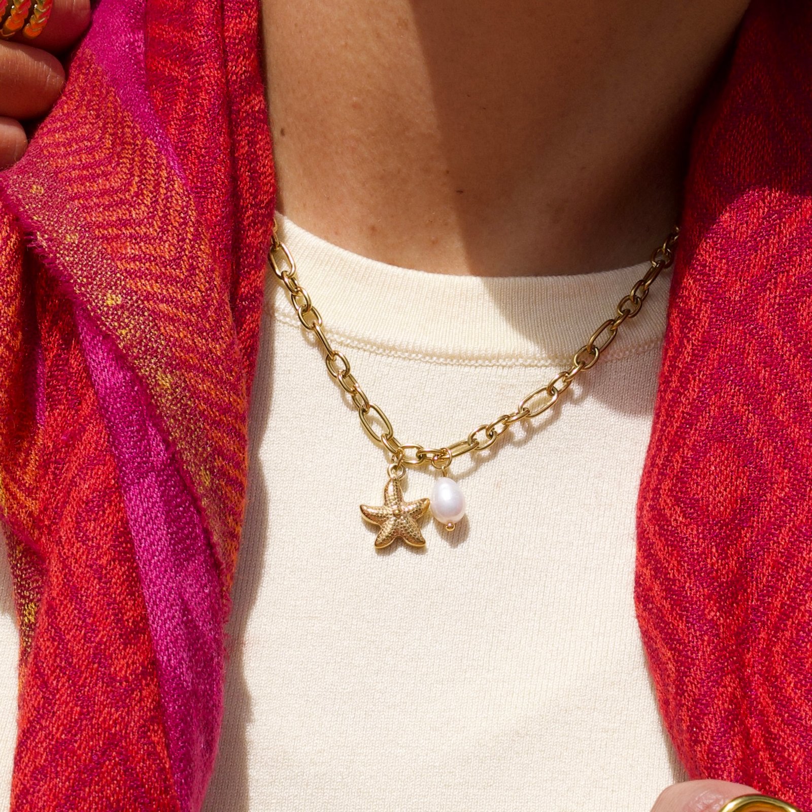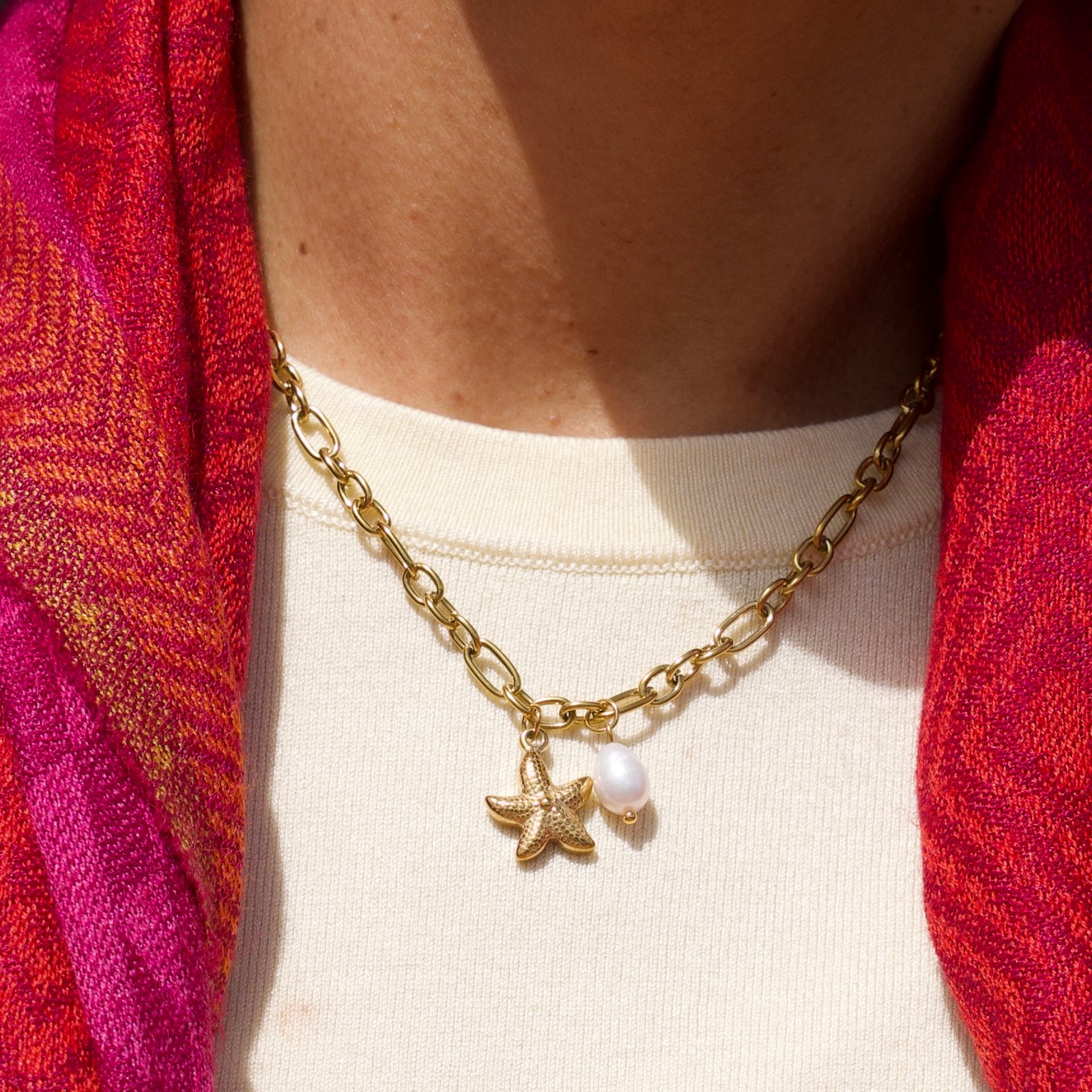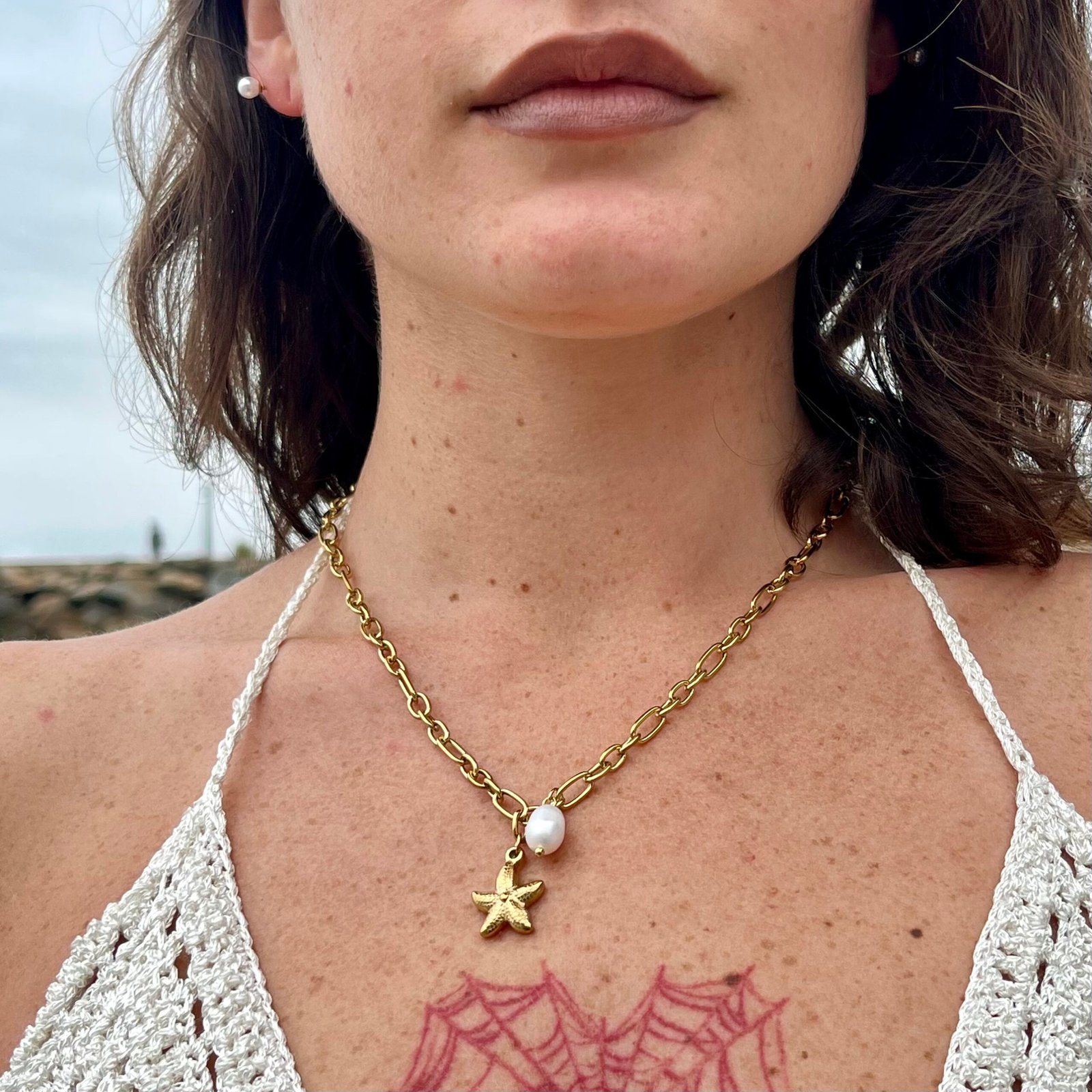 Puerto Fiel, una playa escondida al sur de Lima donde el mar se siente más tranquilo y el tiempo pasa más lento. Su estrella marina y la perla evocan ese paisaje cálido y silencioso: un recordatorio de días bajo el sol, arena dorada y esa sensación de libertad que solo el océano puede dar.