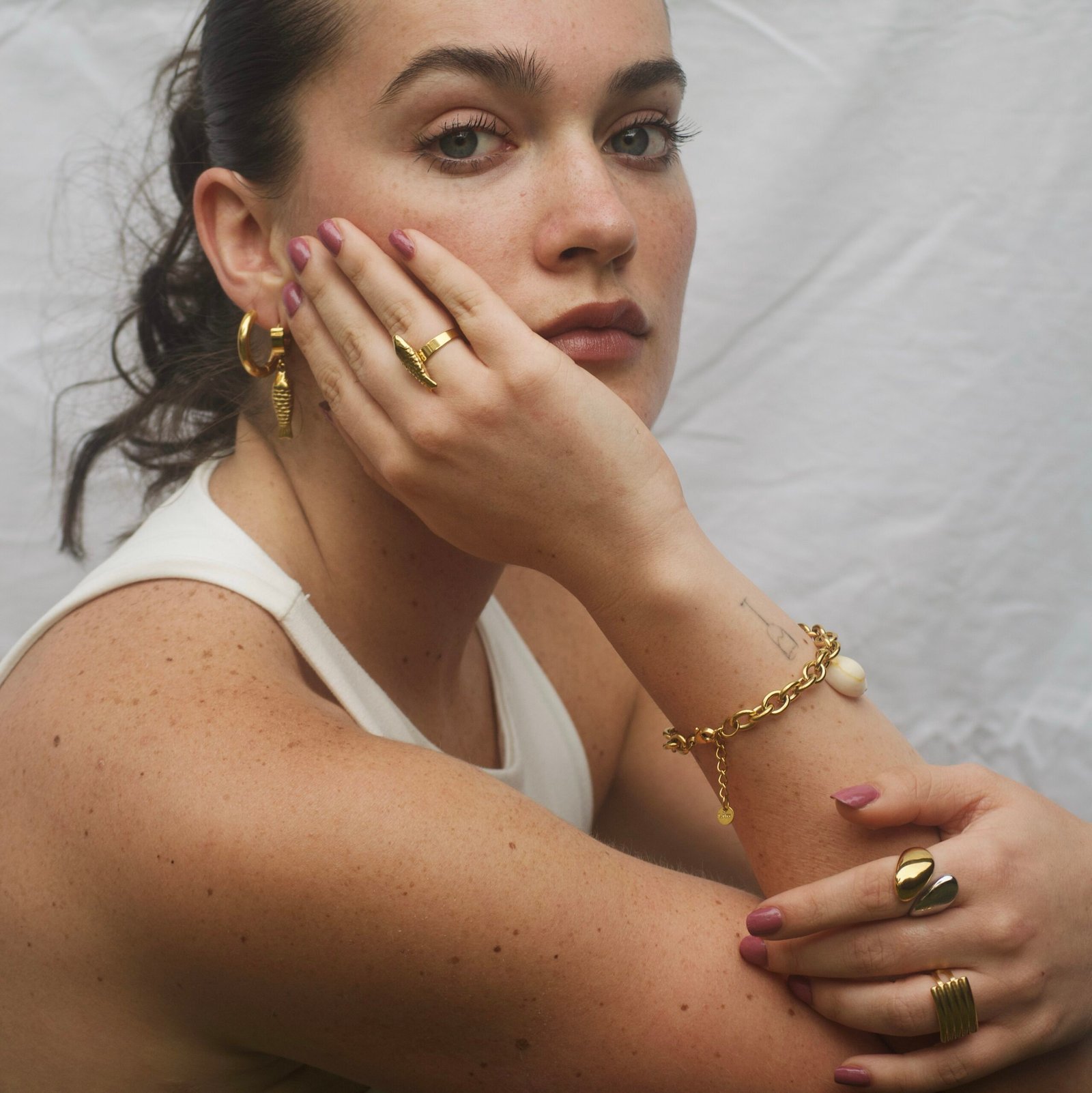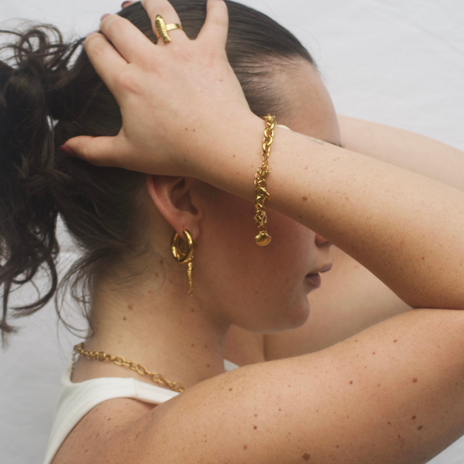Su diseño combina una cadena de eslabones gruesos con una caracola natural, una estrella de mar y una concha dorada, creando una pieza llena de movimiento, personalidad y luz. Es perfecta para quienes aman el estilo playero-chic y buscan un accesorio que transforme cualquier look con un toque fresco, alegre y veraniego.